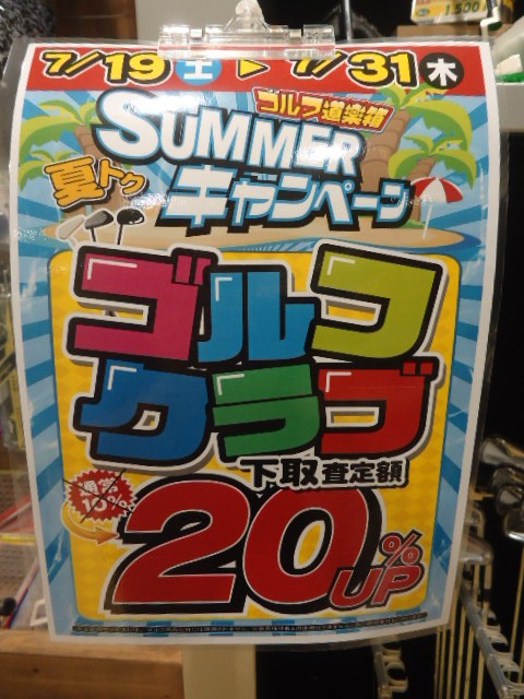 【7/19~31】SUMMERキャンペーン【7/19~31】 2014年7月18日 NEWS インフォメーション サービス 店舗NEWS Shioya ゴルフ道楽箱では、 明日7/19(土)~31(木)まで SUMMERキャンペーンを行います(*^。^*) 内容は、 下取り20%UPです(^-^) 通常10%UPですが、 この期間だけは、 倍の20%UPですよ!!! 欲しかったあの商品や気になっていたあの商品との差額が、 ぐーんと近くなりますよ(#^.^#) このチャンスは見逃せないですね!!! ご来店お待ちしてまーす!!! 新しいクラブにドンドン買い替えちゃってくださーい(*^^)v URL Copied!