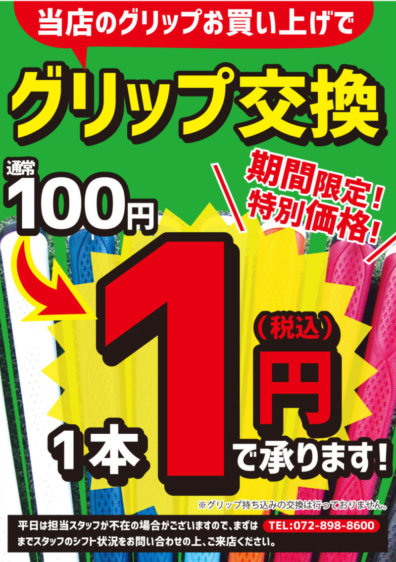 枚方店限定!12月末まで! 『グリップ交換1円キャンペーン』 開 催 中! 12月末までに公式『X』の固…